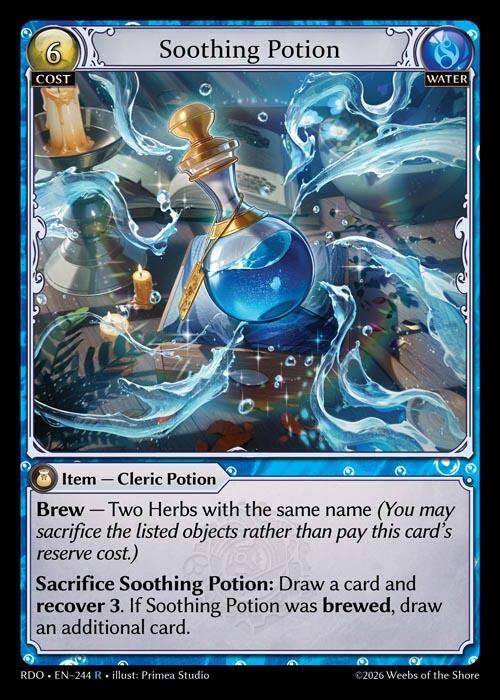 Sacrifice Soothing Potion: Draw a card and recover 3. If Soothing Potion was brewed, draw an additional card.